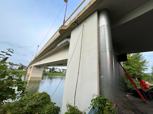 Leistungsumfang: Kennzeichnung der Lage der Bewehrungseisen an Stahlbetonbauteilen der Brücke mittels zerstörungsfreier Radar-Flächenscans